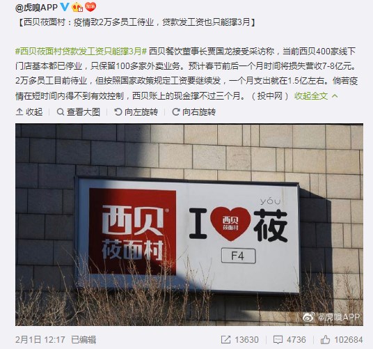 知名餐飲企業西貝餐飲的董事(shì)長(cháng)在接受采訪時無奈表示,疫情緻2萬多員工待業,貸款發(fā)工資也隻能(néng)撐3月。