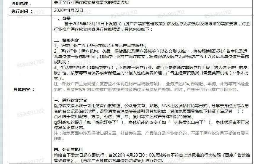百度關于全行業醫療軟文禁推要求的強調通知