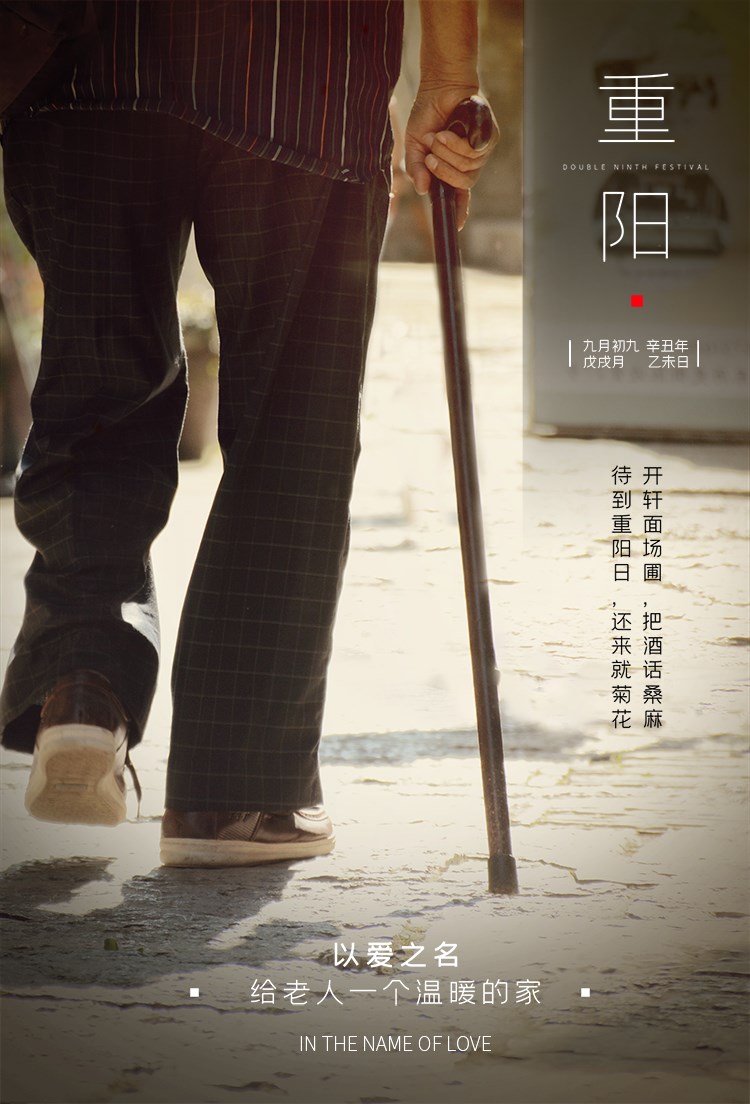 重陽節,是中國(guó)民間傳統節日,節期在每年農曆九月初九日。“九”數在《易經(jīng)》中爲陽數,“九九”兩(liǎng)陽數相重,故曰“重陽”;因日與月皆逢九,故又稱爲“重九”。九九歸真,一元肇始,古人認爲九九重陽是吉祥的日子。古時民間在重陽節有登高祈福、拜神祭祖及飲宴祈壽等習俗。傳承至今,又添加了敬老等内涵。登高賞秋與感恩敬老是當今重陽節日活動的兩(liǎng)大重要主題。