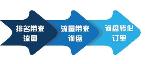 網站從有排名到訂單轉化之間并不是一步到位的,期間包括三次轉化過(guò)程:排名帶來流量,流量帶來詢盤,詢盤轉化訂單。