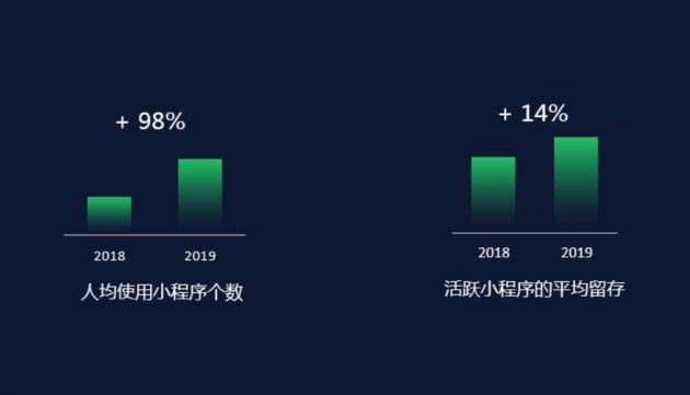 2019年騰訊Q3财報顯示,小程序生态中已經(jīng)擁有超過(guò)3億日活躍用戶。微信團隊披露的最新用戶數據顯示:相較于上一年,小程序人均訪問次數提升45%,人均使用小程序個數提升98%。